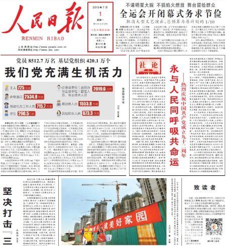 人民日报是中国第一大报,人民日报坚持正确办报方向,积极宣传中央重大决策部署,及时传播国内外各领域信息,敢于痛批社会一些丑陋腐败现象,无视法律的黑社会流氓,利用职权玩忽职守的高级官员,受到读报人欢迎。人民日报海外版,这是中国对外发行的最具权威性的综合性中文日报,主要面向海外华人、华侨、港澳台同胞和在各国,发行80多个国家和地区。